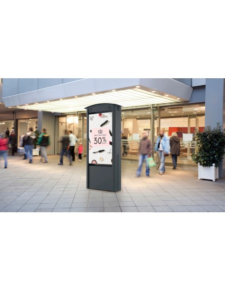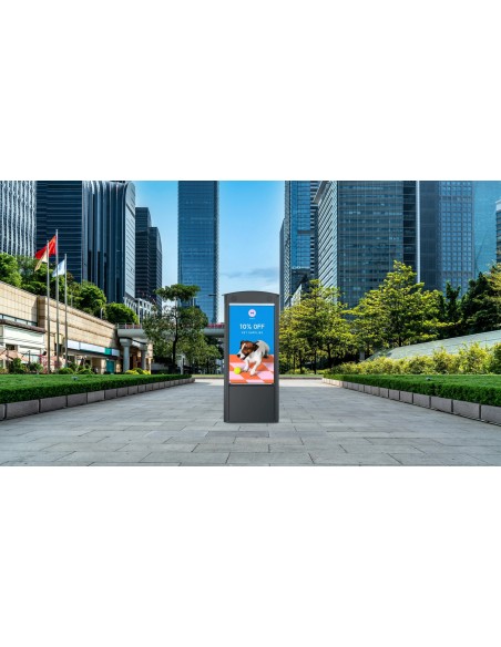 Aggiorna la tua attuale segnaletica con un nuovo Totem Smart City a doppia faccia di Peerless-AV®. Questo totem Smart City di nuova generazione ti permetterà di sostituire rapidamente, facilmente e a distanza i contenuti digitali dinamici, attirando maggiore interesse rispetto alla tua precedente segnaletica statica. Unendo un'estetica elegante e moderna a un design accattivante e facile da usare, il Totem Smart City mette la funzionalità al primo posto. Un overlay touch IR a 10 punti può essere aggiunto su uno o entrambi i lati del totem, per un'esperienza interattiva per il cliente. Gli elementi esterni non sono un problema per questo totem in quanto è resistente alle intemperie, altamente resistente e costruito per durare. La manutenzione e l'installazione sono semplificate poiché non sono necessarie gru o carrelli elevatori e le porte posteriori sicure consentono un accesso rapido al display per scopi di manutenzione. Il Totem Smart City viene fornito con ampio spazio di archiviazione dei componenti e due display per esterni ad alta luminosità Xtreme™ da 55" con risoluzione Full HD1080p di Peerless-AV®. Anche quando posizionato alla luce diretta del sole, sei garantito un'immagine luminosa e nitida quando condividi i contenuti della segnaletica digitale, sia che si tratti di viaggi, indicazioni stradali, pubblicità, meteo, intrattenimento e altro ancora.